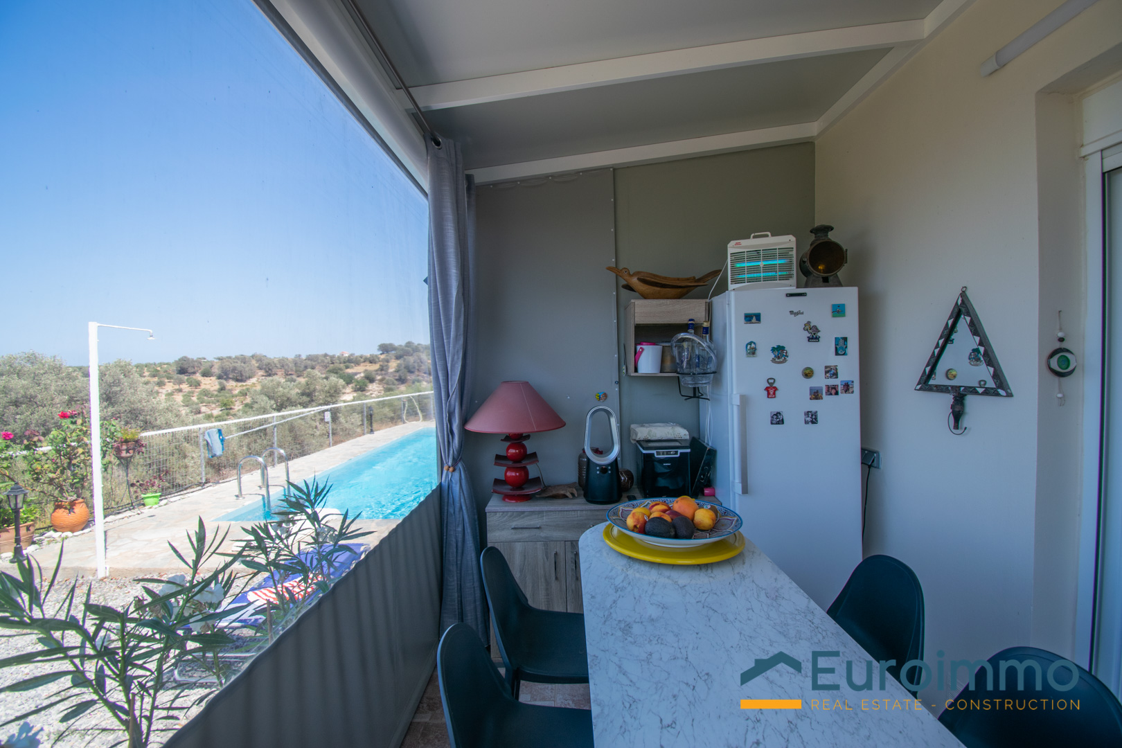 A pochi passi troverete la piscina in comune. È il luogo ideale per rinfrescarsi, con una terrazza soleggiata e lettini che si affacciano sui tranquilli uliveti. Nonostante sia in comune, la zona è nota per essere tranquilla e rilassante.