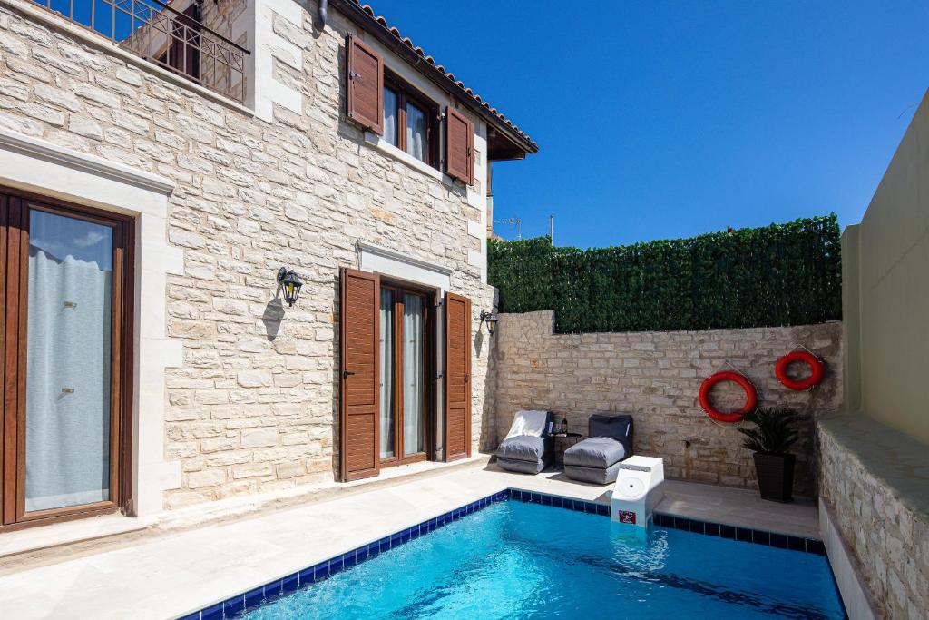 Villa a due piani di 130 mq per noleggio a lungo termine (più di un anno), che costituisce un eccellente esempio di architettura tradizionale cretese e offre sistemazioni confortevoli per un massimo di sei persone nelle sue tre camere da letto dal design accattivante.